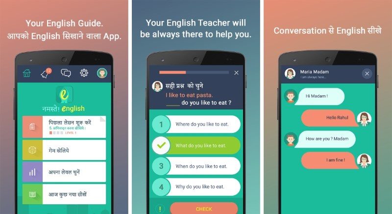 This is one of the best apps for you to learn English if you know Hindi. It helps you in learning spoken and written English from Hindi as well as to learn English grammar and daily English conversations. The app works offline and includes 100+ interactive courses as well as games for building vocabulary by practicing meaning of English words.